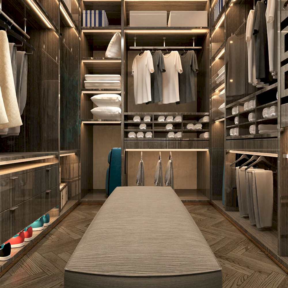Venti giyinme odası, modern tasarım anlayışını sade çizgiler ve net yüzeylerle yansıtır. Fonksiyonel iç düzeni, depolama alanlarını düzenli ve pratik bir kullanıma dönüştürür.