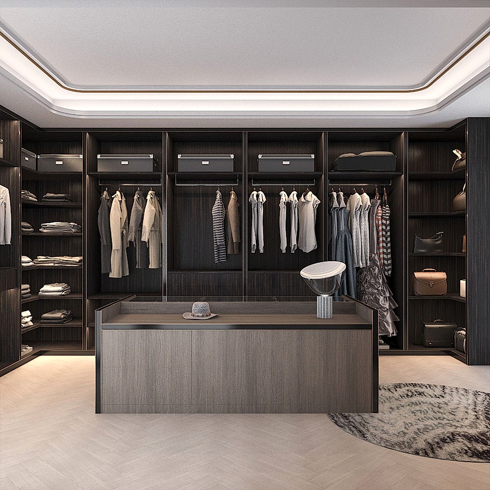Ventidue giyinme odası, modern tasarım anlayışını sade çizgiler ve net formlarla yansıtır. Fonksiyonel yerleşimi, günlük kullanımı konforlu ve düzenli bir deneyime dönüştürür.